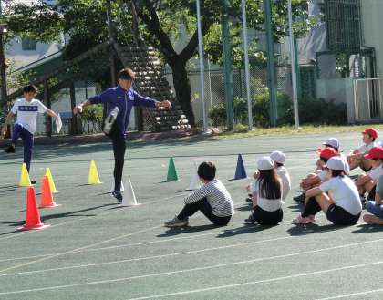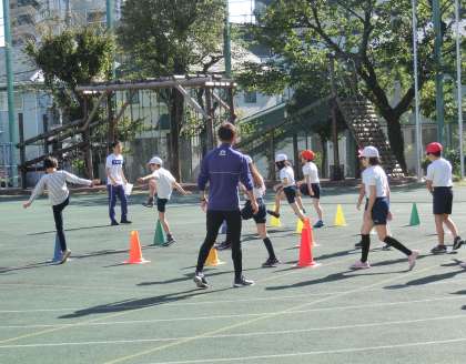 駒澤大学陸上部の先生に練習の方法を教えていただきました。先生の動きをよく見て、子どもたちも、走ることの基本を知ることができました。挑戦してみようとする気持ちも高まりました。授業後、大学の先生方から子どもたちの素直さ、意欲の高さをほめていただきました。マラソン記録会に向けて、励みになる時間、走ることの基礎を学ぶ貴重な時間になりました。