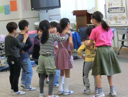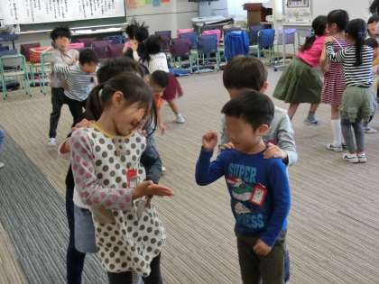今日は1年生の授業の様子を紹介します。最初に音楽の授業の様子です。授業のはじめに、先生の弾くピアノのリズムに合わせて体を動かしました。体全身でリズムを取りながら弾むように活動する1年生。笑顔がとってもかわいかったです。友達と仲よくコミュニケーションを図りながら学びを深める姿もすてきでした。