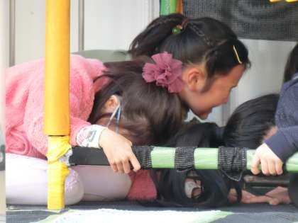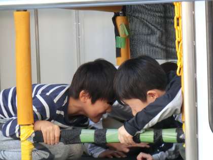 区の防災課の方から大きな地震がきたとき、一番大切してほしい行動について教えていただきました。何より頭を守ることだそうです。今日の起震車でも頭を守る姿勢を、大きな揺れの中で体験しました。実際に大きな揺れが起こると、姿勢を保つことは難しいのですが、揺れを感じたときに素早い行動ができた3年生。たくさんほめていただきました。