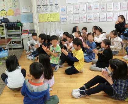 子どもたちから感謝の拍手がおくられました。すてきな本を読んでくださってありがとうございます。
