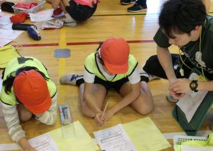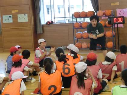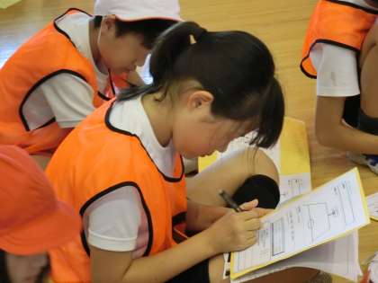 今日のそれぞれのチームのがんばりや、これからの目標などについて振り返りました。ワークシートに自分の思いを書いたり、友達と伝え合ったりと、学習を振り返る活動を大切にしました。友達のよさが発表されるとみんなで拍手をおくり合う5年生。「みんなの気持ちをつないでシュート!」という目標に向かってがんばっていることがよく伝わってきました。