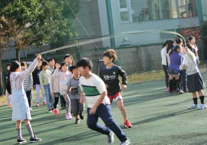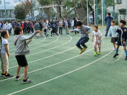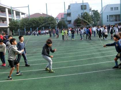 3年生以上は校庭で長なわに取り組みました。クラスで元気に跳んだ数をカウントし、気持ちを盛り上げていました。クラスの団結力も高まります。友達を応援するあたたかな気持ちも必要です。これからも長なわの取組を続けていきます。