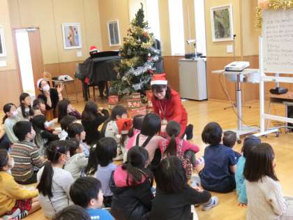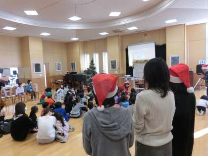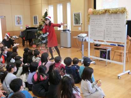 12月14日、12月の土曜授業の午後「きのこのへや 〜クリスマス会〜」が開催されました。日ごろから、子どもたちへの読み聞かせでお世話になっている「きのこのへや」の皆さんがこの会を企画・運営してくださいました。たくさんの子どもたちが集まりました。みんなでジングルベルの歌を歌い、クリスマス会がはじまりました。
