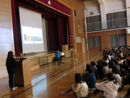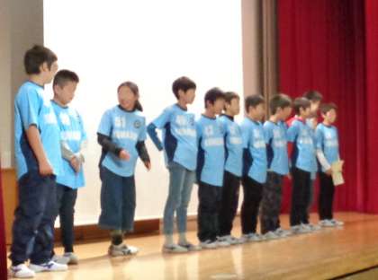 12月23日、2学期最後の全校朝会を行いました。インフルエンザや風邪の流行で2週続けて放送朝会に変更しましたので、久しぶりに全校の子どもたちが集まる月曜朝会になりました。今日は、子どもたちの活躍をたくさん紹介しました。最初に、世田谷区の事業である「海外派遣」代表の子どもから報告がありました。今年度はオーストリア派遣団代表として駒沢小学校の5年生が参加しました。オーストリアで学んだことをしっかり伝えることができました。世田谷区では5年生児童の代表がオーストリア・オーストラリア・フィンランドに分かれて派遣団代表として海外で学びを深めます。次に、絵画コンクールで優秀な賞を受賞した6年生(税に関する絵はがきコンクール)と2年生(はたらく消防の写生会)の表彰式を行いました。サッカー5年生チームも優勝を勝ち取りました。サッカーチームの5年生は、校庭や体育館を使わせてもらっているお礼を堂々と述べました。続いて、野球で優秀な成績をおさめた6年生を紹介しました。たくさんの場での子どもたちの活躍、とてもうれしく感じています。全校朝会最後に、週番の先生から、計画的に学習道具を持ち帰りましょうというお話がありました。
