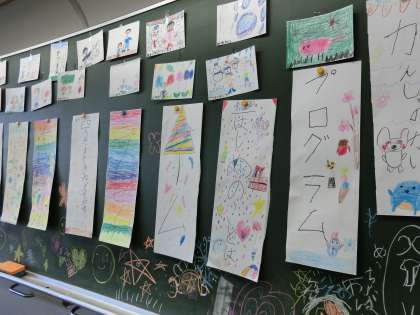 12月23日、1・2学期にお世話になった小1サポーターの皆様をお迎えして、1年生が「感謝の会」を開きました。小1サポーターとは、1年生の給食や授業の支援をしていただく、本校で実施している取り組みです。1年生をサポートしてくださるのは地域の皆様です。今日は、小1サポーターの皆様に日ごろの感謝の気持ちを伝えました。子どもたちが考えたゲームをしたり、司会進行をしたり、一緒に給食を食べていただいたりと、楽しくてあたたかな「感謝の会」を子どもたちが企画しました。プログラムも手作りしました。