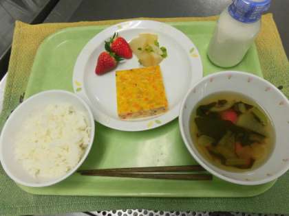 今日は3学期最初の給食でした。白衣やマスクを忘れた給食当番さんを何人か見かけました。まだまだ感染症が流行する時期ですので、しっかりと身支度をし、必ず手洗いをしてから給食当番のお仕事を行って欲しいと思います。今日の献立は品数が多く、配膳に時間がかかりましたし、少し大きめの豆入り卵焼きでしたがとてもよく食べていました。いちごは栃木県産の「とちおとめ」でした。少し硬めの果肉でしたが、十分な甘さもありおいしくいただきました。