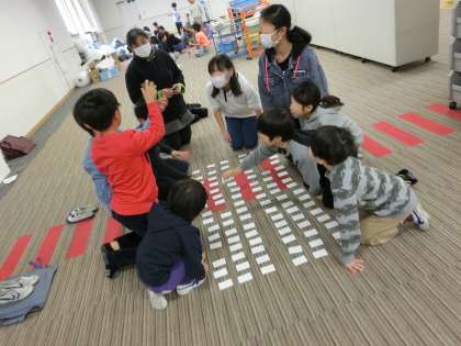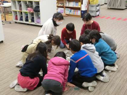 国語や教科「日本語」でも学習している百人一首に挑戦しました。読み手は、地域の方や先生が担いました。子どもたちは真剣に、取り札を見つめていました。