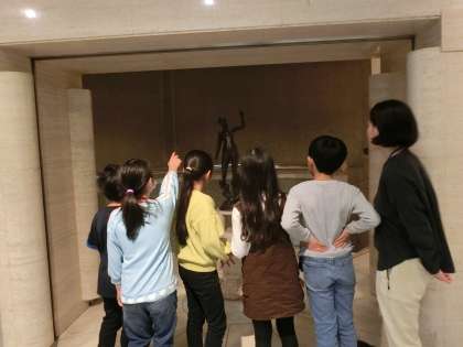 4年生の子どもたちが世田谷美術館に鑑賞教室に出かけました。館内に入ると「よろしくお願いします。」のあいさつをしました。今日は、5〜6名の子どもたちに一人の案内の方がついてくださいます。世田谷美術館の貴重な作品を説明してくださ方々です。