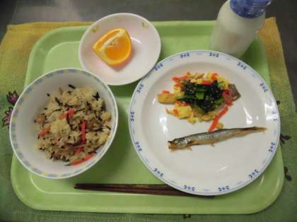 今日のくだもの「いよかん」は、明治時代、山口県萩市の農園で発見され当初は山口の古名である「穴戸(あなと)」から「穴戸みかん」と呼ばれていました。後に愛媛県の別名「伊予(いよ)」から「伊予かん」と呼ばれるようになったそうです。12月から3月にかけて旬を迎え、甘味が強くむきやすい柑橘です。ビタミンCが多く含まれていますので、かぜ予防にも役立ちます。教室を回っていると、皮を上手にむけない子や、手が汚れるからとはしで食べている子を見かけました。皮をむくのは面倒ですが、この時期はいろいろな柑橘が出回ります。ぜひ積極的に食べてもらいたいと思います。