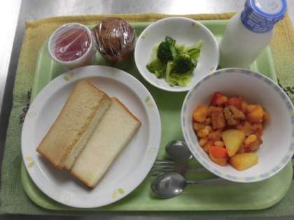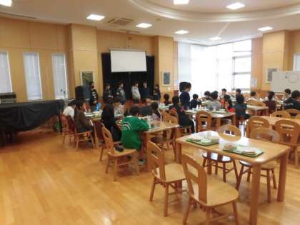 今日は2月生まれのお誕生日給食でした。事前に選んだお楽しみのセレクトデザートは、ココアマフィン23名、ぶどうゼリー12名でした。パンとマフィンの組み合わせには、水分が必要だったようです。牛乳をたくさんお代わりしている子がいました。高学年の給食委員会の児童が低学年のお世話から、ランチルームの準備や片付けまでしっかり行っていました。