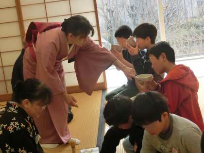 自分でお茶をたてたのち、日本の伝統的な文化であるお茶をいただきました。茶器の持ち方、向きなどを教えていただき、心静かに味わいました。