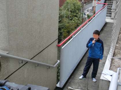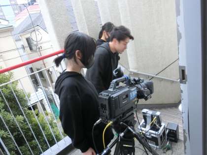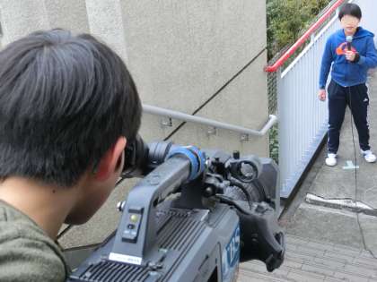 台風の様子を実況中継しました。離れた場所から状況を伝える難しさや、視聴者に的確に台風の様子を伝えるためのカメラアングルを判断する大切さを知りました。5年生の子どもたちは、真剣に体験活動に取り組むことができ、とてもすばらしい実況中継になりました。
