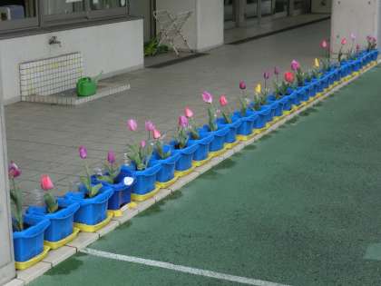1年生が育てたチューリップ。1年生の感謝の思いを伝えるかのように可憐に咲きました。色とりどりのかわいらしい花を見ていると、6年生が学習発表会で演じた「パレット〜手をつないで歩いて行こう〜」を思い出します。6年生84名の個性が花開き、お互いの個性を尊重する仲間とともに、今日、駒沢小学校を卒業していく6年生。ご卒業おめでとうございます。