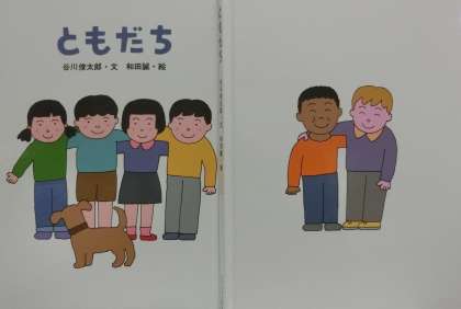 みなさんのいない教室や校庭はひっそり静まり返っています。早く駒沢小学校の元気で明るいみなさんの笑顔に出会いたいです。学校がはじまるまで、ご家族のみなさんと毎日の生活を健康に過ごしていきましょう。学校の先生や主事のみなさんもとってもさみしがっています。先生たちはみなさんのことを思い、おうちでのお勉強の参考になればと、ノートや課題を作りました。みなさんのおうちに送りましたので、もう少しで届くと思います。待っていてくださいね。みなさんに大好きな1冊の本を紹介します。「ともだち」という本です。友達は一生の宝です。生きていくうえで友達がいかに大切かということを、谷川俊太郎さんのすてきな言葉と、和田誠さんのほのぼのとした絵でやさしく伝えてくれる本です。学校がはじまってみなさんが元気に登校したら、全校朝会で紹介したいと思っています。(校長より)