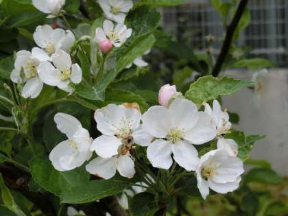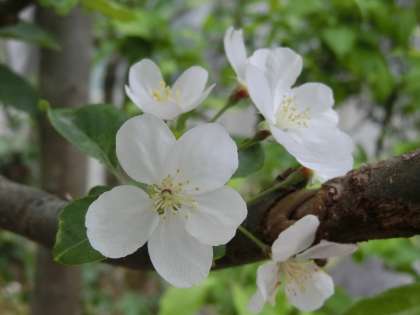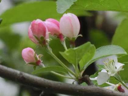 学校の門の近くに「ひめりんご」の木があります。桜に少し遅れて「ひめりんご」の花が咲きました。桜の花と少し似ています。つぼみがとってもかわいいです。桜は花が咲き終わるころ若葉がしげりはじめましたが、「ひめりんご」は花と葉っぱが一緒です。こうして改めて学校の周りを歩いていると、自然の美しさをたくさん感じます。