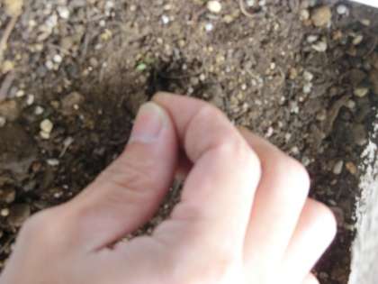 プランターの土に、小さな小さな種を植えるための穴をあけました。手の指の第1関節くらいの深さの穴に、ホウセンカの種を3粒まきます。3年担任も慎重に、そしてやさしくホウセンカの種を扱っています。こんな小さな種の中に、どんな「いのち」が宿っているのか・・・毎日水やりしながら学校でも観察していきます。