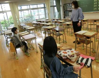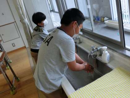 5月18日は、3年生の課題受け渡し日です。子供たちが元気に登校してきました。最初に正面玄関で、検温結果の聞き取りと手指の消毒をして教室に向かいます。先生としっかりあいさつをして、帰るときには石鹸でよく手を洗います。ていねいな手洗いができている子が多く、感心しました。