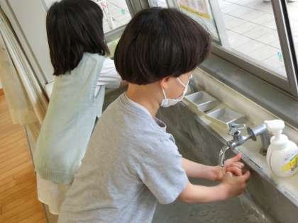 授業の終わりは「手洗いの時間」です。1年生の子供たちにとって学校生活一つ一つが大切な学習です。15分でできることは限られていますが、今日の15分の子供たちのがんばりに拍手をおくりたいと思います。
