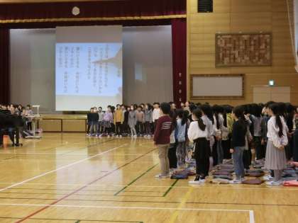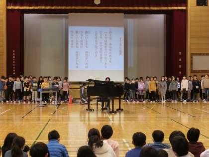週1回、15分だけの子供たちとの出会い。今日はまた、子供たちのいないさみしい学校になってしましました。体育館に行ってみてもしいんと静まり返っています。誰もいない体育館にいると、駒沢小学校の子供たちが運動したり、スピーチしたり、歌を歌ったりするすてきな姿を思い出します。写真は、昨年度の音楽朝会の様子です。みんなで歌声を響かせることのできる日が早く来ることを願っています。学校のホームページに「音楽室」のコーナーを作りました。音楽担当よりメッセージをおくります。