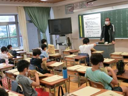6月1日は、4年生の分散登校の日です。担任が改めて自己紹介をしました。今日の課題の確認もみんなでしました。3年生のころの映像を見ながら、学校が再開する楽しさをみんなで感じる時間もありました。黒板には担任からのメッセージか書かれていました。「おはようございます。ほんとうに久しぶりに友達がたくさん教室に集まりました。半分の人数、半分の時間数とはいえ、4年生、ようやくスタートです。今年も学校にくるのが楽しみになるようなすばらしいクラスを、みんなで作っていこう」・・・心からの担任の願いを込めました。