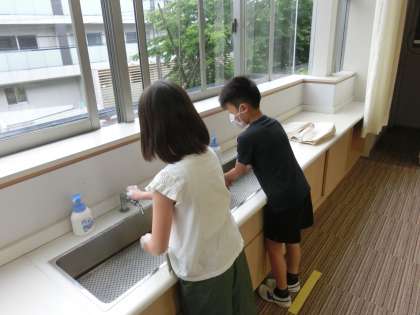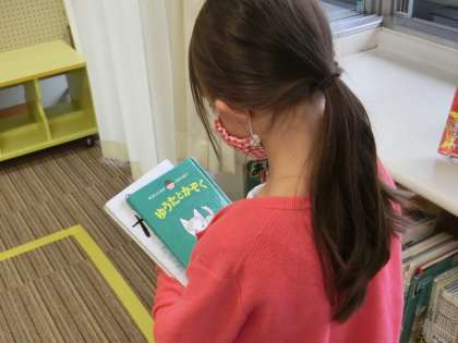 本の貸し出しの手続きをしていただきました。「ありがとうございます」としっかりお礼を言える子ばかりです。お気に入りの本を見つけることができてうれしそうにしている子もたくさんいました。もちろん3年生も手洗いを忘れません。