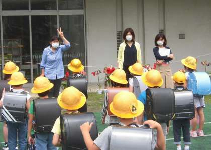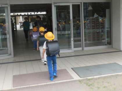 授業再開後の分散登校1日目、1年生の子供たちは3時間の授業をとてもがんばりました。今日は初めての下校指導の日となりました。コース別に集合し、安全に気をつけながら帰宅します。これからも分散登校の機会を利用して、下校時に大切なことを確認していきます。ご家庭でも交通安全についてのお話をしていただきますようお願いします。