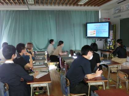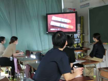 DVDでアレルギー対応について、正しい行動を知りました。エピペンの打ち方については、練習用エピペンを使い、実際に一人一人が演習しました。