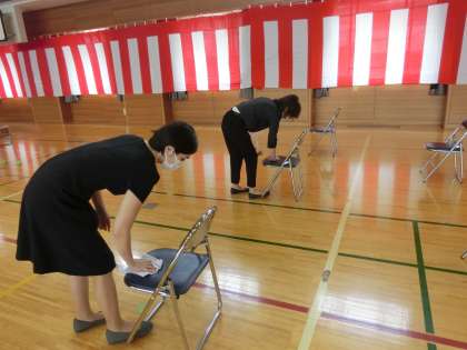 保護者の皆様、6月6日の入学式では、感染防止へのご協力ありがとうございました。学級ごとの入学式、時間の制約や間隔を広げた座席、参加人数の制限など、様々なことでご理解いただきましたことに感謝申し上げます。学級での入学式が終わるごとに、教職員による消毒をすることで、感染防止に努めました。入学式会場では換気をしっかり行いました。1年生の子供たちにとって、大切に1日となること、そして、来週また元気に登校してくれることを願っています。本日はありがとうございました。