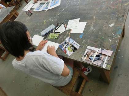 本校教員の専門性を生かした講座『夏の「つなぐ」図工室』(3〜6年生対象)、『夏の「つなぐ」音楽室』(3年生対象)を開設します。図工ではポスター制作、音楽ではリコーダーの基本を学びます。写真は図工室の様子です。