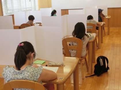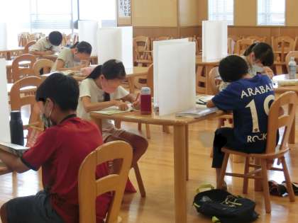 主体的な学びの場となる自習コーナー、後半初日も満席です。静かに自らの学習に取り組む子の意気込みが伝わってきました。