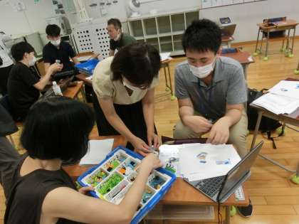 教科書で扱う内容について、実際に体験しました。講師の先生から、「先生はプログラミングのプロでなくてもいい。何より大切なのは先生自身がプログラミングを実際に体験すること」ということを学びました。私たちが想像もできないような未来社会を、子供たちは社会の中心的な形成者として活躍していきます。子供たちの未来のために、私たち教員も研修を重ねていきます。