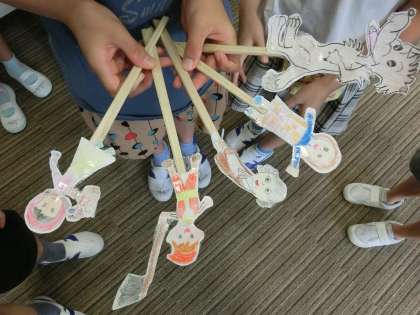 2年生が一生懸命に取り組んだ「人形劇」。この係活動の中には、本校がめざす「主体性」「協働性」「創造性」の姿がたくさん見られます。1学期の係活動を最高のものにするために、夏の「つなぐ」教室での勉強後の少しの時間を重ねて、納得がいくまで準備した子供たち。練習にも力を注いでいました。練習は子供たちが自分たちで計画しました。・・・子供たちの主体的な行動です。仲間と力を合わせて創り上げた「赤ずきん」の劇。仲間の努力をたたえる拍手。・・・子供たちの協働的なかかわりが見られます。チケットを配付するなど、様々な工夫がありました。・・・子供たちの創造的な取り組みが見られました。これからも子供たちの主体的で協働的・創造的な学びを大切にしていきます。