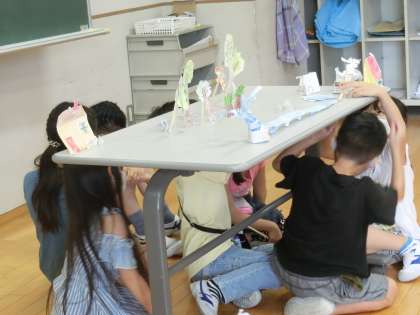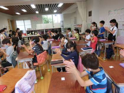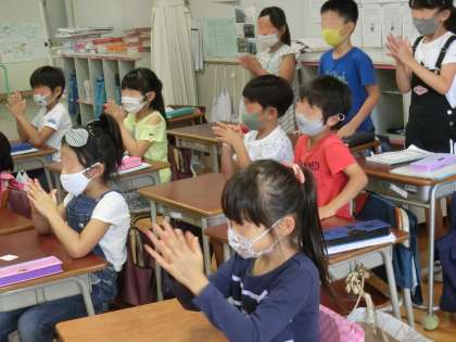 「赤ずきん」の劇を見せてくれた友達に、大きな拍手がたくさん寄せられました。