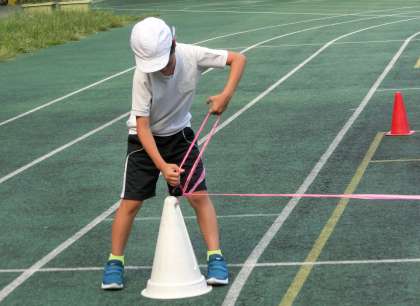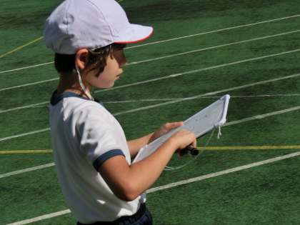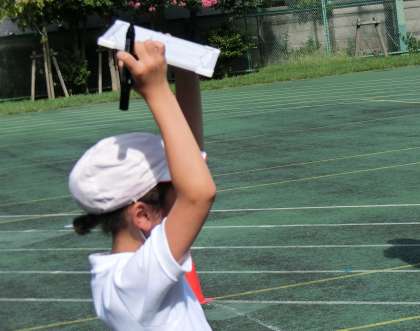 ゲームで得点を競うだけでなく、ホワイトボードに作戦を立てたり、準備や片づけを自分たちで進んで行ったりと様々な活動を取り入れました。子供たちが持っているホワイトボードには、応援の言葉も書かれていました。勝敗を受け入れ、互いの努力を認め合うことも大切なねらいの一つです。