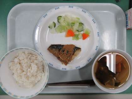 練りごま・すりごま・いりごまを入れたごまだれは、魚料理だけではなく肉や魚に豆腐など様々な料理にあう味付けにしました。今日は焼いたさばにごまだれをかけて、おいしくいただきます。