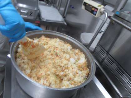 今日のチャーハンには、角切りのチャーシュー(無添加)を加えてボリュームを上げています。チャーシュー(豚肉)のうま味と他の具材が混ざり、良い味付けになっていました。