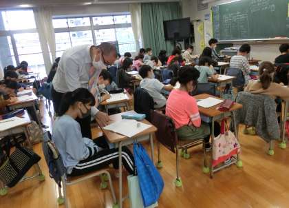 4年生の理科の授業の様子をご紹介します。「ものの温まり方」の単元の導入にあたる授業です。この単元の目標は「ものの温まり方に着目する中で、金属、水及び空気の温まり方を調べる活動を通して、実験などの技能を身につける」「既習の内容や生活経験をもとに、根拠のある予想や仮説を発想する力、図などで考えを表す力、学んだことを整理しまとめる力を育てる」「主体的に課題解決する態度を養う」ことです。みんな真剣に学習に取り組んでいました。