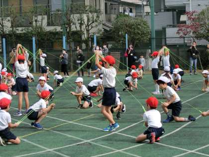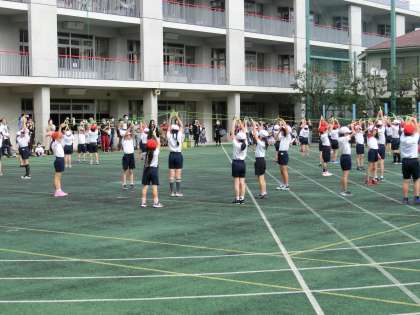 2年生のがんばりを1年生も応援しました。校庭で、ベランダで・・・拍手をおくっていました。