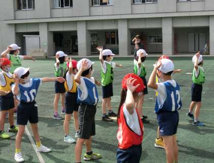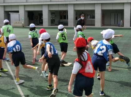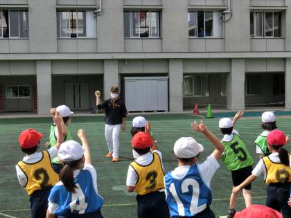 ボールを投げるフォームを教えていただきました。とても大切なこつです。わかりやすく楽しい活動、テンポのよいコーチの指導に、子供たちもしっかりこたえています。一生懸命に練習に励んでいました。