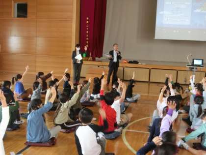 セーフティ教室とは、全ての公立小・中学校、都立学校2200校での実施を目指し、平成16年度から開催されている東京都の取り組みです。学校において子供たちの健全育成の活性化及び充実を図るとともに、保護者・都民の参加のもとに、家庭・学校・地域社会の連携による非行・犯罪被害防止教育の推進に資することが目的です。今年度は、1年生「連れ去り防止」、3年生「万引き防止」についての内容です。世田谷警察の方を講師にお迎えして、ご指導いただきました。1年生は大切な合言葉として「いかのおすし」を教えていただきました。