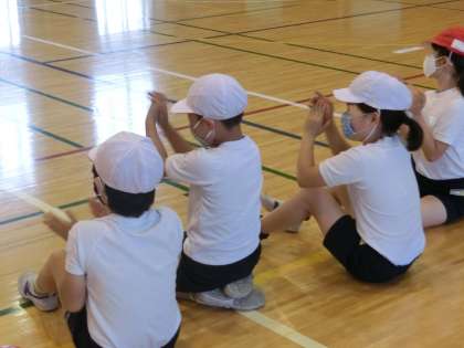 友達を一生懸命に応援する姿がたくさん見られました。3年生の子供たちのすてきなところです。また、この授業では振り返りを大切にしました。学習カードを活用して「うまくいったところや友達のよかったところ、次の時間にがんばりたいこと」を振り返ります。グループごとの話し合いの場も大切にしました。