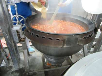 煮込み用のトマトは、じっくり煮込まないと酸味が強く食べにくいため、良く煮込んでいます。酸味がとれてまろやかな味になったらルーをゆっくり加えて、トマトシチューの完成です。