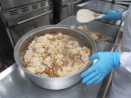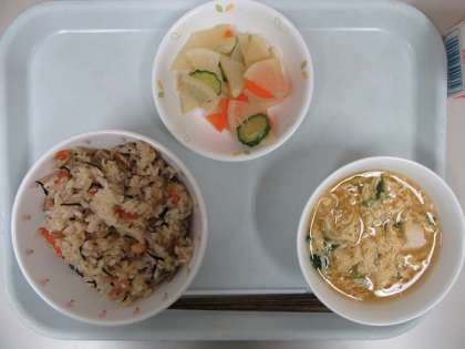 ひじきには牛乳の12倍のカルシウム・ゴボウの7倍の食物繊維などが含まれる栄養豊富な食べ物です。今日は芽ひじきを使ったひじきごはん、とても食べやすい味付けになっています。
