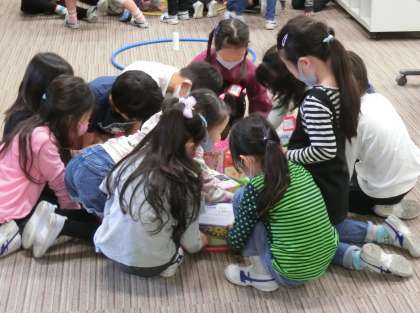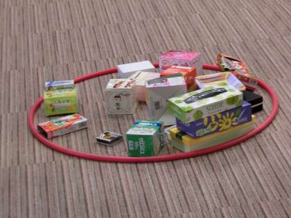 駒沢小学校の教室のつくりを生かして、オープンスペースのコーナーに集まりました。自分たちが持ってきた箱の形を分類しました。友達と相談しながら形を確認する姿も見られました。箱を重ねる活動も、箱の形を分類する活動も「数学的活動」と呼ばれるもので、こうした活動を通して、知識や技能を身につけていくことが大切です。算数で学んだことのよさや楽しさを感じながら、これからも学ぶ態度を育てていきたいと思っています。