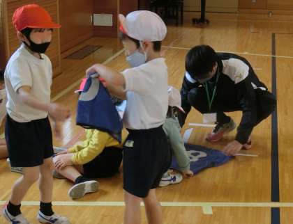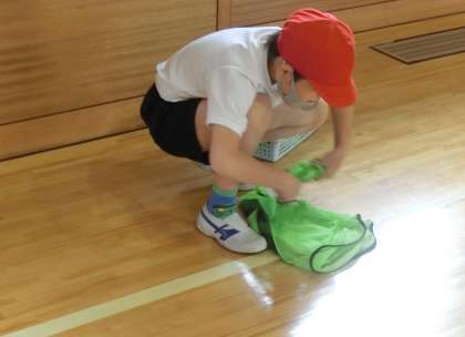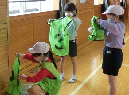 体育の授業で使ったゼッケンは、自分たちでしっかり片づけます。「ちゃんとたたもうね」「番号順に並べようようよ」「ありがとうって言って先生に返そうね」など、友達とよりよい片づけ方を話し合いながら活動しているグループが多く、子供たちの問題解決に力の大きさを感じました。