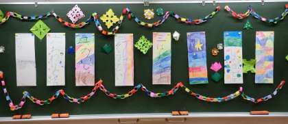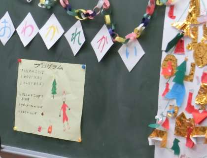 各教室の黒板には、1年生の子供たちが作ったすてきなプログラムがはられていました。子供たちの心がこもった装飾でいっぱいでした。感謝の気持ちが伝わってきました。