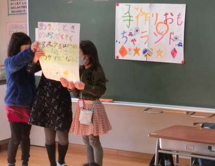 この日を迎えるまでに、2年生はたくさんの準備をしてきました。てづくりおもちゃを作るだけでなく、1年生に喜んでもらえるような計画を考えました。工夫を重ねました。よく話し合ってきました。当日の司会進行も自分たちで行いました。