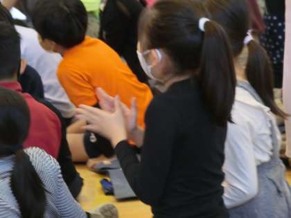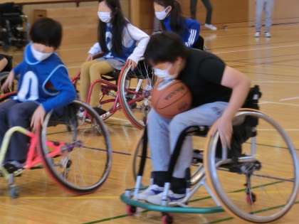 4年生に引き続き、3年生も車いすバスケットの体験学習に参加しました。実際に車いすにも乗せてもらい、バスケットに挑戦しました。みんな真剣です。上手に車椅子を扱っています。体験をしている友達を応援する3年生もまた、とても真剣なまなざしです。みんなの気持ちが一つになりました。
