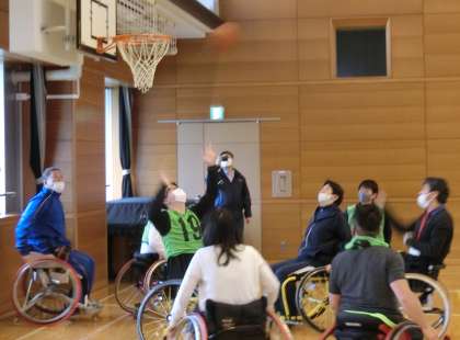この日は、4年生の学校公開日でした。保護者の皆様もたくさん参観してくださいました。子供たちが車いすバスケットボールを体験する前に、大人たちがデモンストレーション。参観のお父さん、お母さんも飛び入れで参加してくださいました。