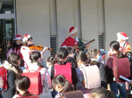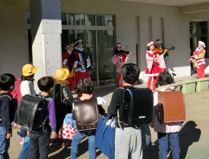 水曜日は、昼休みがないため、子供たちの下校の時間に演奏をしてくださいました。軽快な音楽が子供たちを見送ります。なんだか心わくわくします。楽しい気持ちでおうちに向かうことができました。